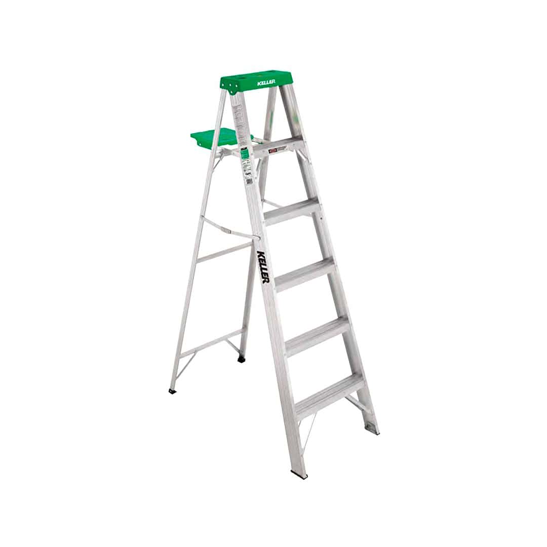 Los 7 elementos que componen a esta escalera la convierten en un producto que no puede faltar, tanto para labores profesionales de trabajo, como para simples tareas domésticas. Se trata de una escalera en forma de tijera que cuenta con 5 peldaños de un costado, mientras que de su lado opuesto, cuenta con una repisa para apoyar los materiales de trabajo necesarios.